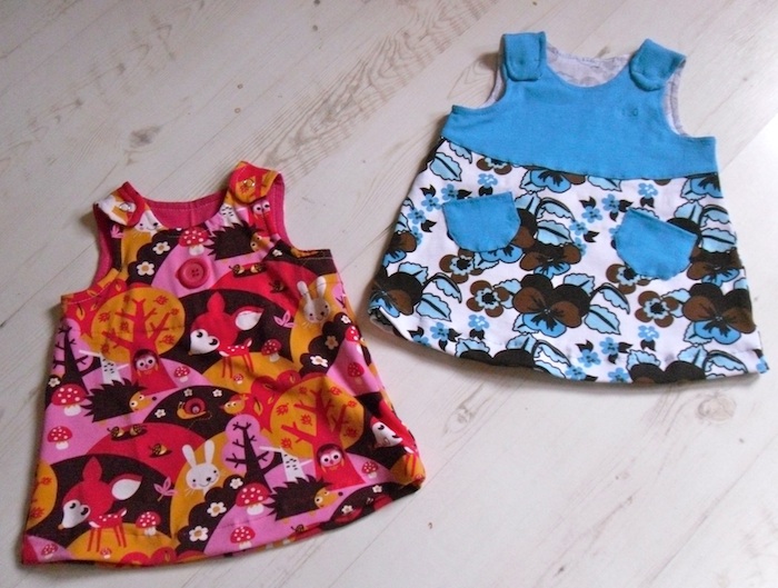 Det går lite tid mellan sytillfällena, men när jag väl sätter mig vid symaskinen önskar jag att tiden aldrig ville ta slut.....eller tråden för den delen. För ett tag sedan beställde jag tyg från Znokdesign. De har så söta tyger och min favorit är ett rosa-orange-brunt-tyg i 70-talsinspirerat mönster. Av 50 cm tyg blev det en liten västklänning och en pyjamas.